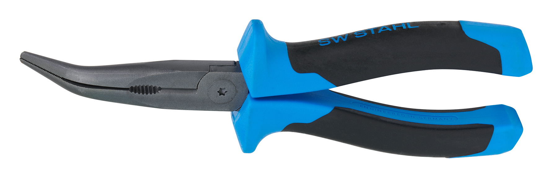 Mit langen, 45° abgewinkelten, flach-runden Backen