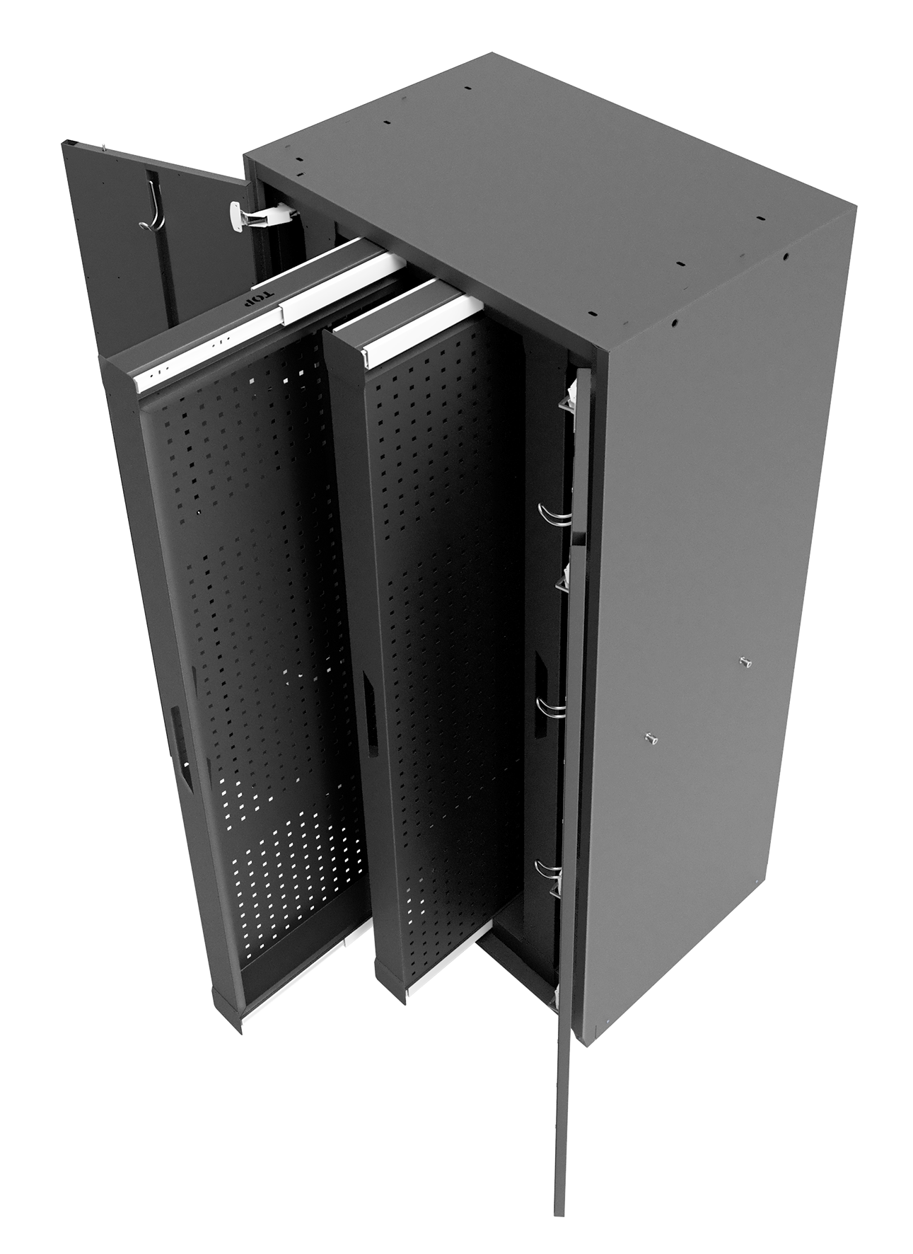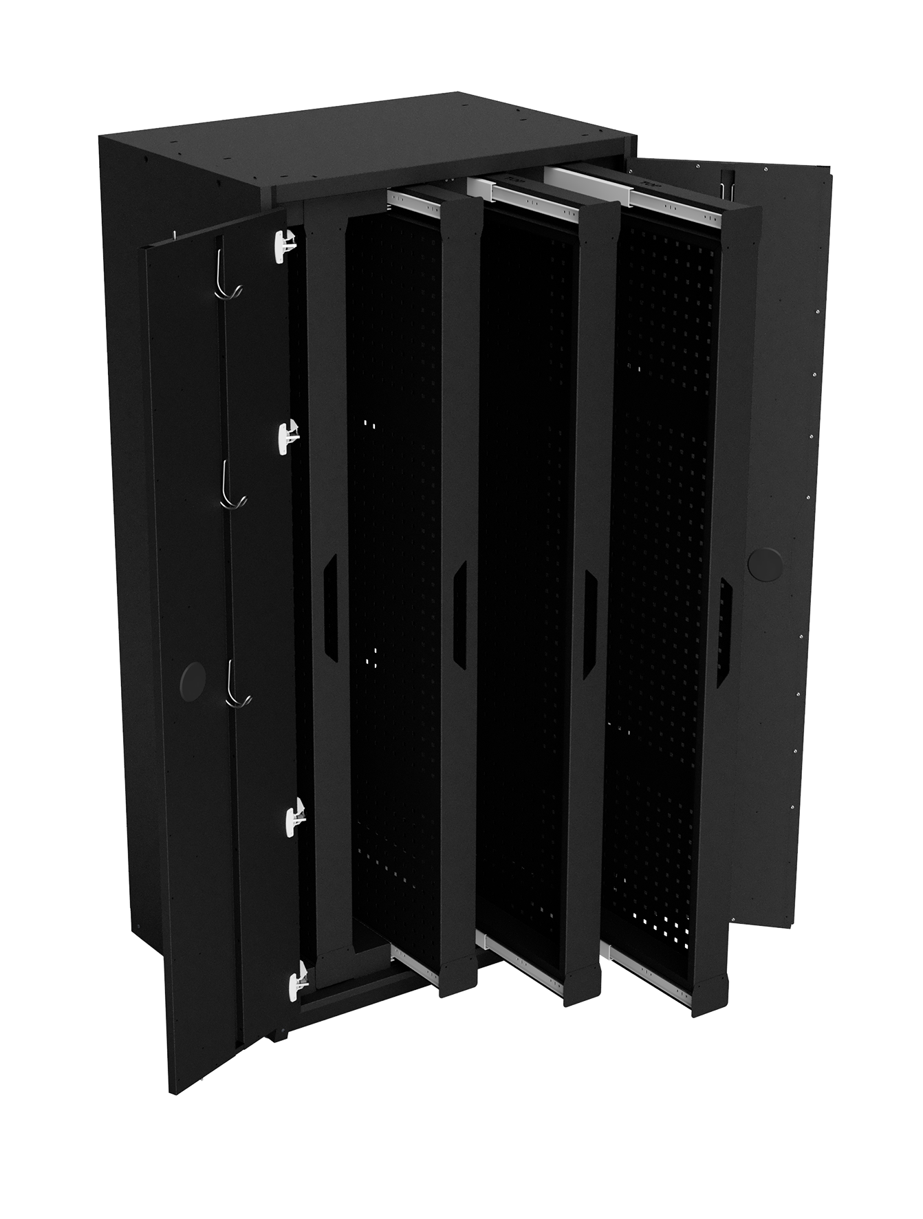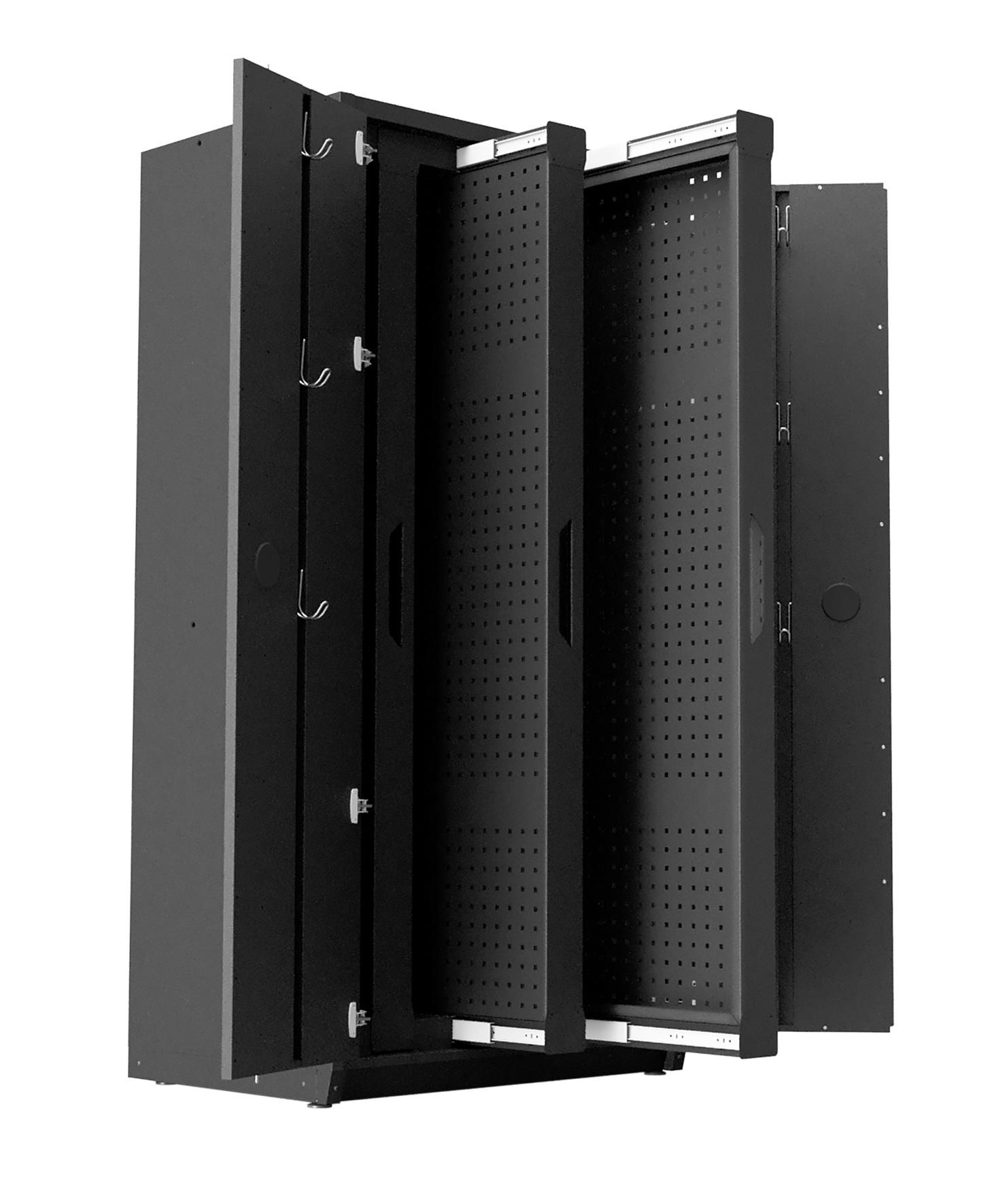 4 Schwerlast-Auszüge mit beidseitiger Lochwand im 38 mm Raster
